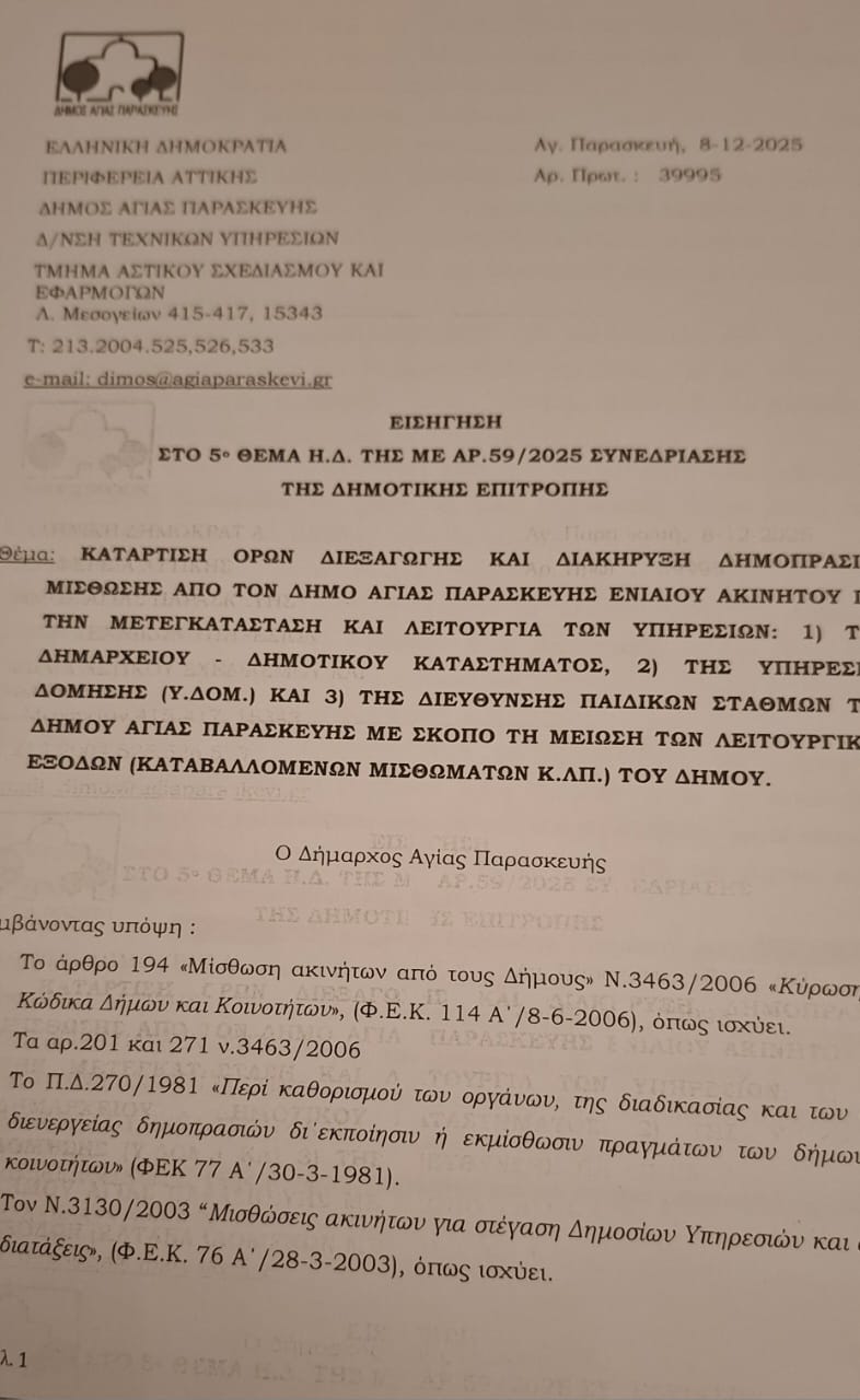 Με σύνεση και συνέπεια προειδοποιούμε για το καταστροφικό αποτέλεσμα που θα έχει η ανάληψη υποχρεώσεων ενοικίασης ενός νέου κτηρίου για τη στέγαση των υπηρεσιών, τόσο για τα οικονομικά του δήμου Αγίας Παρασκευής, όσο και για τις συνθήκες εργασίας των εργαζομένων, αφού αναμένεται να είναι μικρότερης επιφάνειας κύριων χώρων.